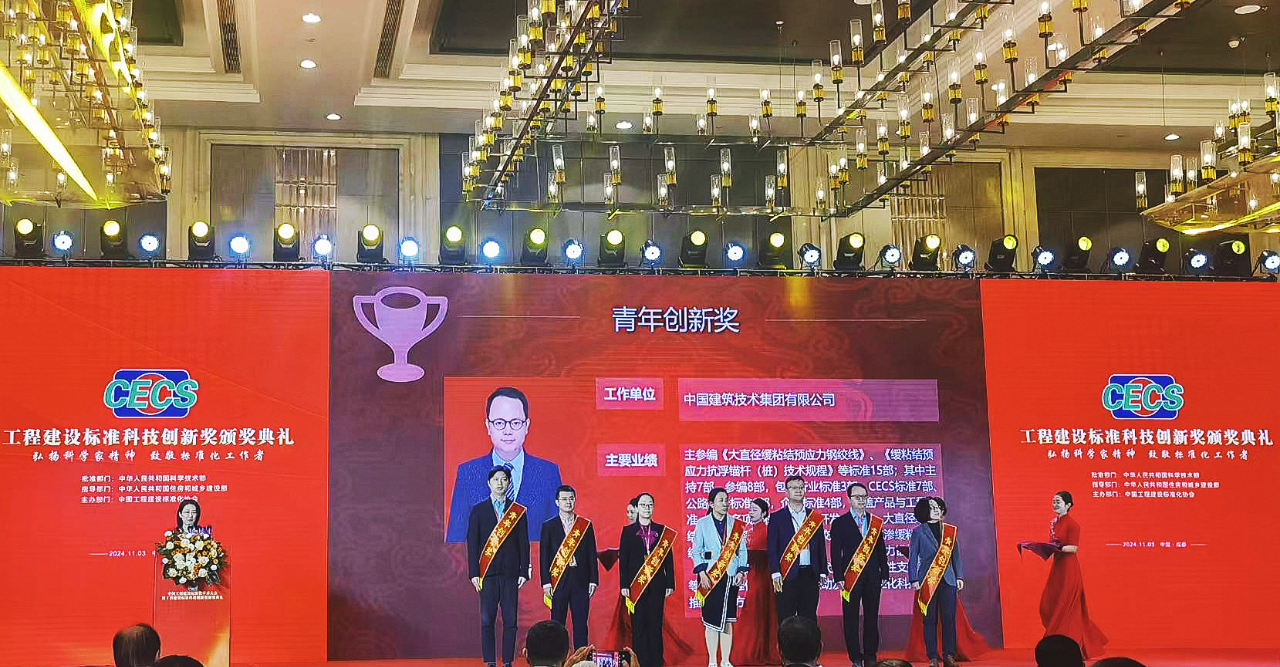 11月3日,2024年度中國(guó)工程建設(shè)標(biāo)準(zhǔn)化學(xué)術(shù)大會(huì)暨工程建設(shè)標(biāo)準(zhǔn)科技創(chuàng)新獎(jiǎng)?lì)C獎(jiǎng)典禮在成都舉行。中國(guó)建技預(yù)應(yīng)力工程事業(yè)部總經(jīng)理蔣方新榮獲2024年度工程建設(shè)標(biāo)準(zhǔn)科技創(chuàng)新獎(jiǎng)“青年創(chuàng)新獎(jiǎng)”。