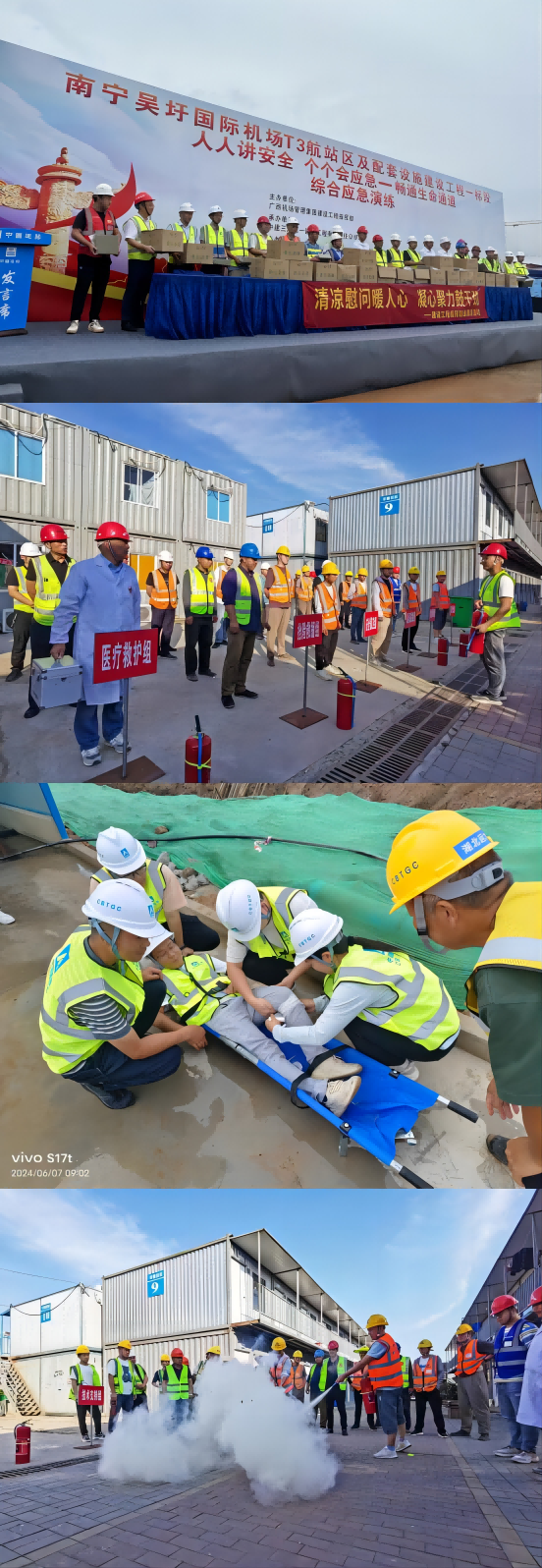 為檢驗(yàn)和提高管理人員、作業(yè)人員應(yīng)急能力和水平,鍛煉隊(duì)伍,完善機(jī)制,預(yù)應(yīng)力工程事業(yè)部南寧吳圩國際機(jī)場T3航站樓工程、華北分公司廣東電網(wǎng)裝修項(xiàng)目、機(jī)電工程分公司無錫酒店商辦機(jī)電工程、西北分公司宜昌EPC工程總承包項(xiàng)目等各在施項(xiàng)目組織或參與消防、防汛、高處墜落等應(yīng)急救援演練,進(jìn)一步增強(qiáng)了員工應(yīng)急處置能力。