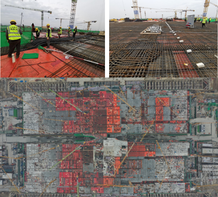 高鐵杭州西站是中國特大型鐵路樞紐站房之一,是集鐵路、軌道交通、長途客運(yùn)、地鐵、公交、出租及社會(huì)車輛等多種交通于一體的“大型綜合交通樞紐”,是國內(nèi)第一個(gè)付諸實(shí)施的“站城融合”特大型高鐵樞紐,是新時(shí)代高鐵樞紐站城融合的標(biāo)桿。工程總建筑面積約74萬平米,其中預(yù)應(yīng)力工程量約9000多噸,是目前國內(nèi)預(yù)應(yīng)力工程量最大的高鐵站房。其結(jié)構(gòu)復(fù)雜,承軌層采用預(yù)應(yīng)力箱梁+鋼管柱結(jié)構(gòu)方案;施工難度大,鋼結(jié)構(gòu)、預(yù)應(yīng)力、主體鋼筋等工序同步穿插進(jìn)行;工期緊,主體結(jié)構(gòu)工期僅10個(gè)月。預(yù)應(yīng)力類型多,既采用了傳統(tǒng)有粘結(jié)預(yù)應(yīng)力技術(shù),亦采用了我單位自主研發(fā)的大直徑緩粘結(jié)預(yù)應(yīng)力技術(shù)。