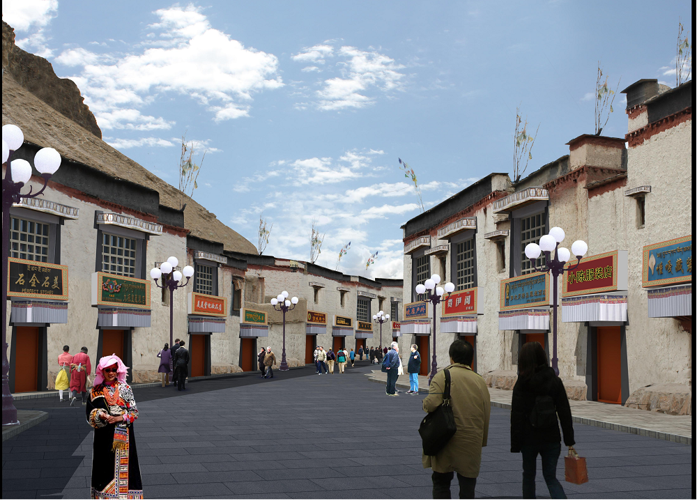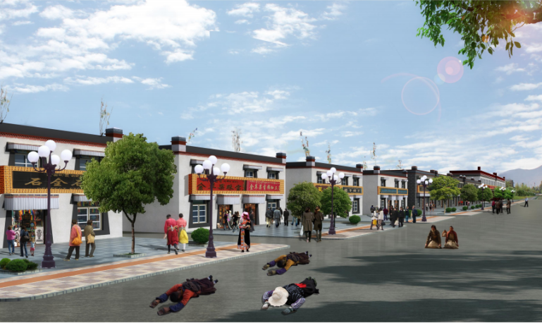 更新:對于規(guī)劃地塊內(nèi)的沿街建筑,質(zhì)量較好的,但風(fēng)貌較為普通的現(xiàn)狀建筑,規(guī)劃予以更新。主要表現(xiàn)為外立面的重新裝飾,融入藏式風(fēng)格,以及新功能的植入。重建:對于規(guī)劃用地范圍內(nèi)的質(zhì)量較差的建筑、危房、以及影響風(fēng)貌但難以處理的建筑,規(guī)劃予以拆除并重新建設(shè)。新建:位于江孜南部的地區(qū)處于未開發(fā)狀態(tài),規(guī)劃將其作為城市新區(qū)建設(shè)用地,并融入新藏式風(fēng)格。