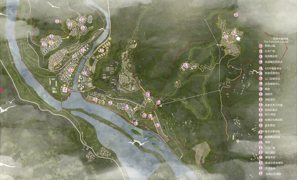 靈巖山景區(qū)位于成都市都江堰灌口街道,距成都市區(qū)約55公里,距都江堰市區(qū)約4公里。居于岷江北岸,山下即為世界自然/文化雙遺產(chǎn)—都江堰水利工程。景區(qū)規(guī)劃范圍約5.4平方公里,綜合服務(wù)區(qū)規(guī)劃占地約0.5平方公里。本項(xiàng)目立足公園城市理念的創(chuàng)新實(shí)踐,旨在恢復(fù)重建震損旅游基礎(chǔ)設(shè)施體系,擴(kuò)充完善景區(qū)整體接待能力,高水平打造中國(guó)西部旅游重鎮(zhèn)的新標(biāo)桿。