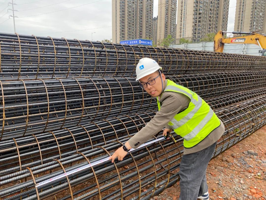在面對主筋間距允許偏差在10mm內(nèi)、箍筋間距和螺旋筋間距要控制在20mm以內(nèi)、鋼筋籠長度應(yīng)控制在50mm以內(nèi)等諸多樁基鋼筋籠驗收要求時,他對每一個檢測驗收項目認真負責,確保同時滿足鋼筋成本可控和設(shè)計要求,同時保證測量結(jié)果的準確和可靠,超出項目管理目標預(yù)期。