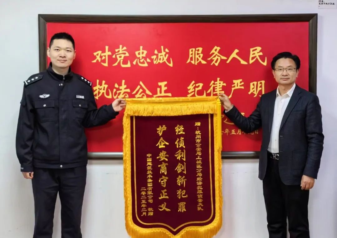 2月27日,中國建技黨委副書記、總經(jīng)理余湘北,黨委副書記、紀委書記李小陽,法務(wù)楊建旭一行專程赴杭州市上城區(qū)經(jīng)濟犯罪偵查大隊,向辦案民警代表送錦旗,對經(jīng)偵大隊在偵辦中國建技原浙江分公司總經(jīng)理系列重大犯罪案件中展現(xiàn)的專業(yè)能力表示由衷欽佩,對其高效行動致以誠摯謝意。