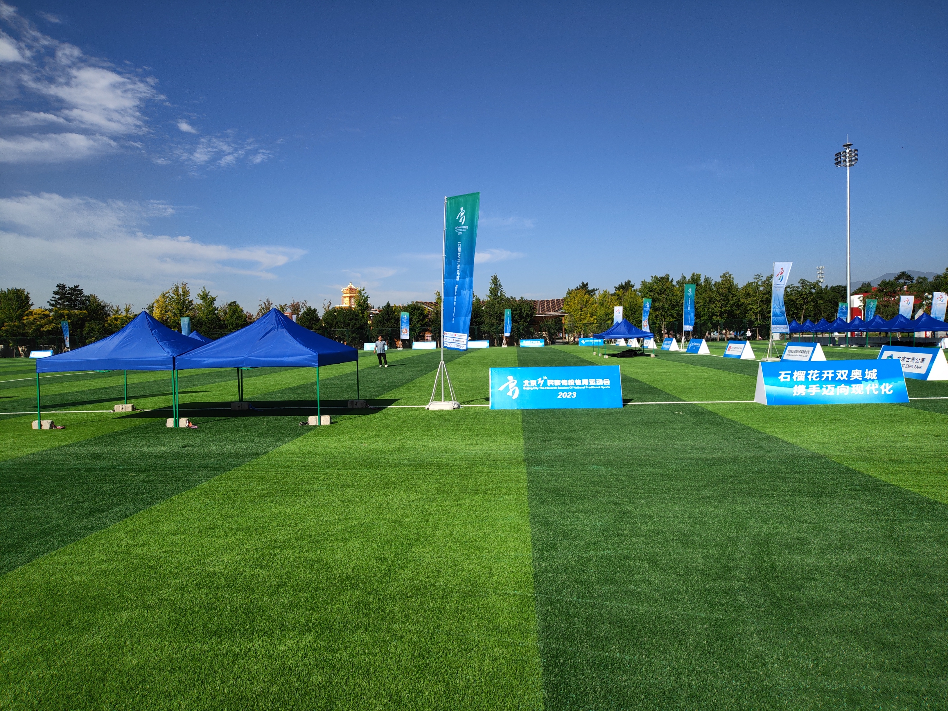 項目亮點涵蓋了總面積達11000平方米的室內綜合館運動木地板和約27000平方米的室外人工草坪,展現(xiàn)了其龐大的體量;室內外場地均配備了專業(yè)的體育照明燈具,并經過了專業(yè)的深化設計,不僅功能性強、技術性高,而且難度系數較大。這些場地不僅要滿足多種等級賽事的標準,還要特別考慮彩色電視實時轉播的視覺效果。8月21日至25日,以“石榴花開雙奧城 攜手邁向現(xiàn)代化”為主題的北京市第十一屆民族傳統(tǒng)體育運動會在延慶區(qū)隆重開幕。北京世園公園作為本次運動會的主辦場地之一,承接了珍珠球、蹴球、武術等民族競技項目。中國建技作為該場地的設計及施工單位,以高標準、高質量提前完成工程,為北京市第11屆民族運動會的順利召開提供了有力保障。