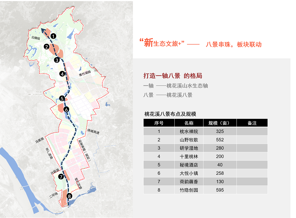 按照“山水林田湖草”命運共同體理念,主要規(guī)劃了包括桃花溪流城生態(tài)治理、土地梳理、產業(yè)策劃等三方面的內容。