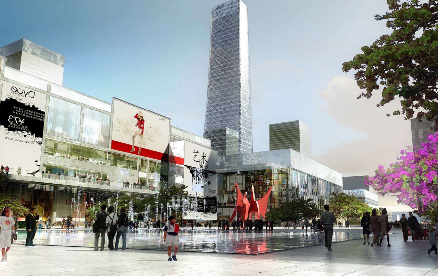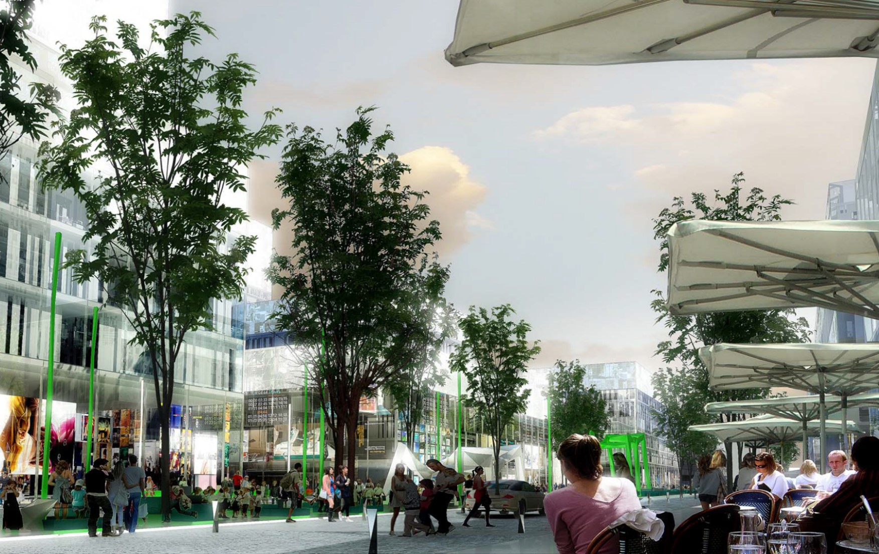 地下空間設(shè)置:地下空間由三個(gè)部分組成,分別為地下商業(yè)位于鄰近中央廣場(chǎng)和地鐵站的地塊,由地塊紅線分開并在地塊間以地下通道方式連接;底下停車庫設(shè)置在每個(gè)地塊下;為能夠連接到全部地塊,底下停車庫之間有連接隧道。