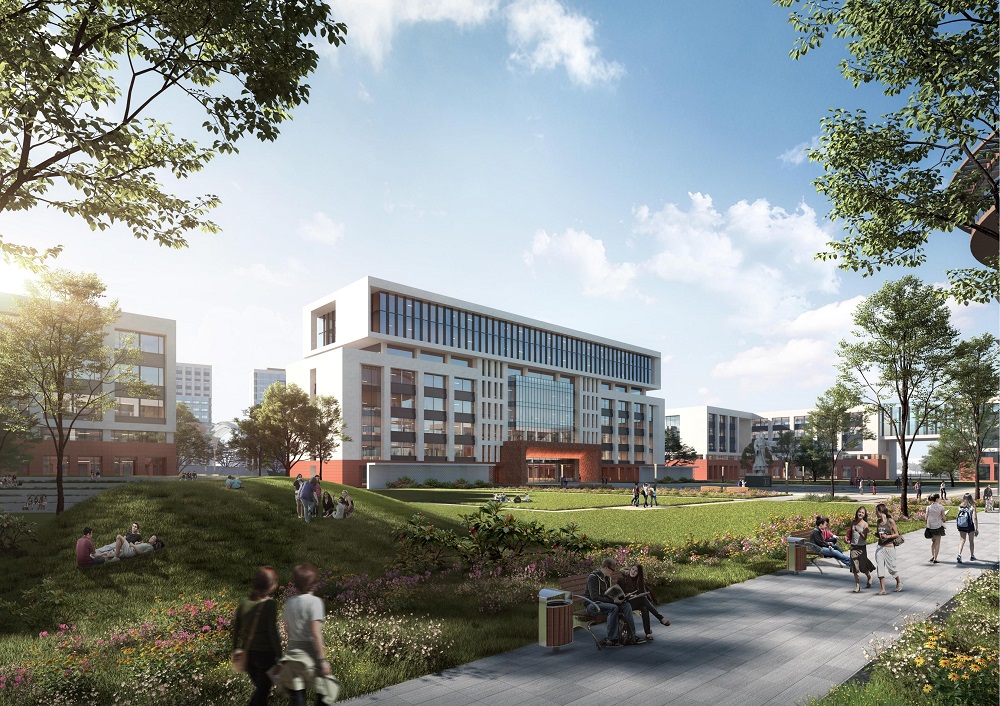 設(shè)計規(guī)劃在校學生10000人,新校區(qū)總體規(guī)劃以建設(shè)全國一流高等職業(yè)院校校園為目標,塑造沿空間主軸生長、沿生活水軸展開的優(yōu)美校園空間形態(tài)。